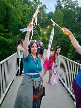 From the moment we arrive, there’s time to settle in, connect, and ease into the experience - chatting, laughing, and adorning ourselves with playful touches like glitter tattoos and small inner child offerings. These moments of arrival matter just as much as thr movement itself.